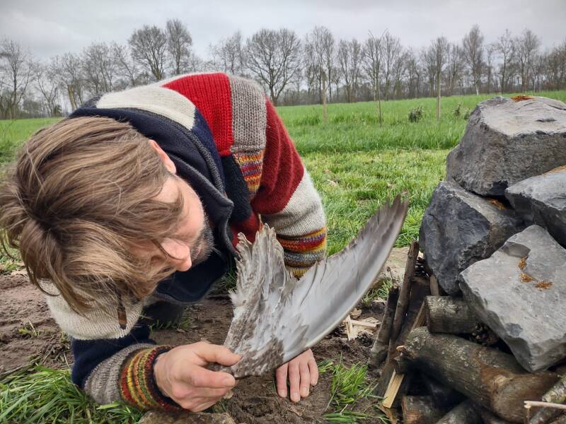 Als we op zondagmiddag met zijn vijven in de hut zitten, voor de eerste keer, stromen we over van dankbaarheid. Ik kijk naar Wouter, de watergieter. Hij leefde zijn leven als een koorddanser en leerde daardoor te vliegen in plaats van te vallen. Met een rotsvast geloof in moeder aarde, in gedragen worden, in zijn eigen creativiteit.