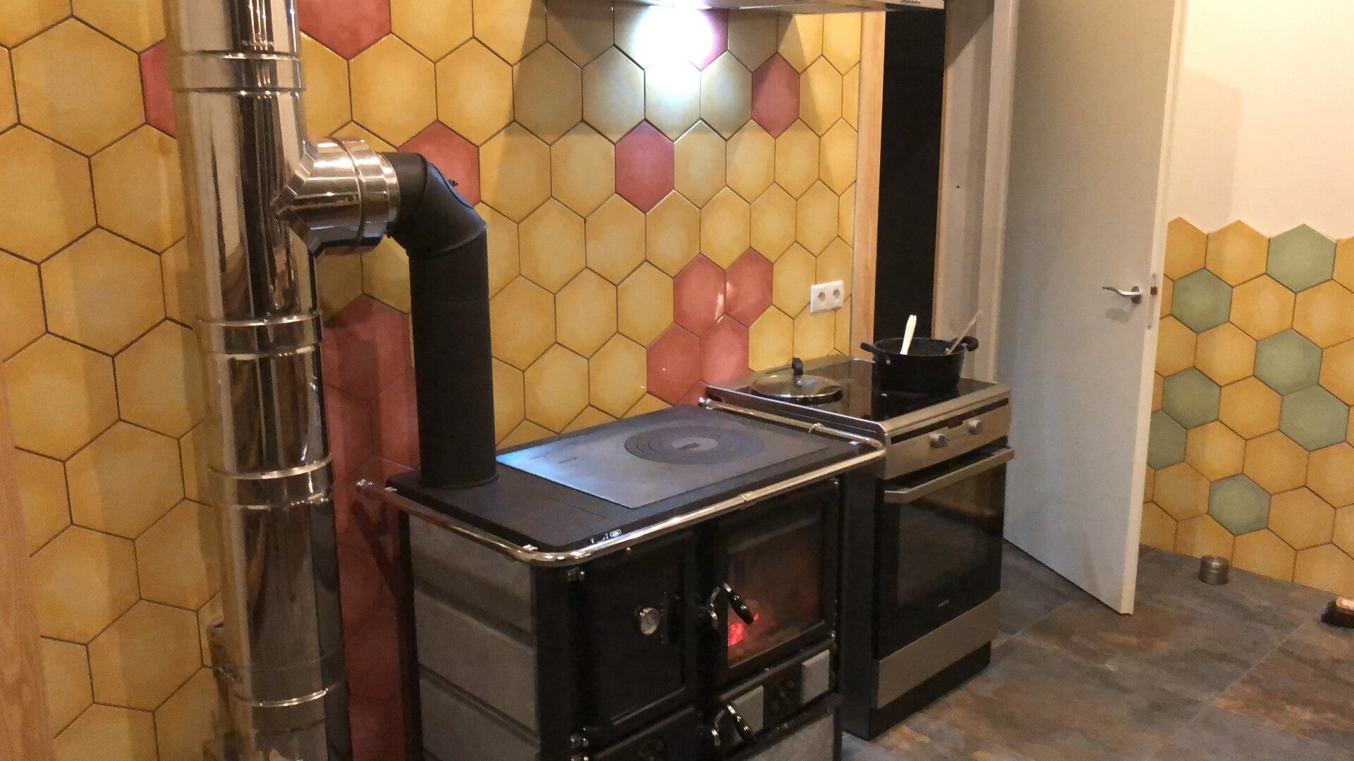 Tot op zekere hoogte hebben we ook duurzaam gebouwd. Het huis is extreem goed geïsoleerd waardoor weinig verwarming nodig is. Verwarmen (en koken/bakken!) kan met het hout gestookte fornuis. Ook is er nog de CV met flussigas-tank, of met een kleine aanpassing, elektrisch met een aantal infraroodpanelen. Hoewel zonnepanelen nog op het wensenlijstje staan hebben bewust niet gekozen ingewikkelde technische oplossingen of prijzige ecologische kunstwerken zoals een leemstuc-kachel. Enerzijds omdat we met Duitse wet- en regelgeving en dus ook met een wat conservatiever beleid te maken hebben, maar ook omdat we minimalistische mensen zijn; des te minder apparatuur er stuk kan, des te beter.